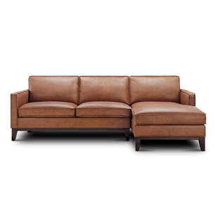 Get together everyone for a moving picture marathon or a game dark with this Casteel 111.five" Wide Genuine Leather Sofa & Chaise. Combining durable, superlative-quality adroitness and high-density foam filling, this sofa will provide everyone with great comfort and undoubtedly become the centerpiece of your living room, den, urban loft, condo, or home office. Removable legs allow for simple delivery for tight spaces. Available in a variety of timeless colors, you're certain to find something that matches your decor. Due to leather'southward natural characteristic, texture and color may vary